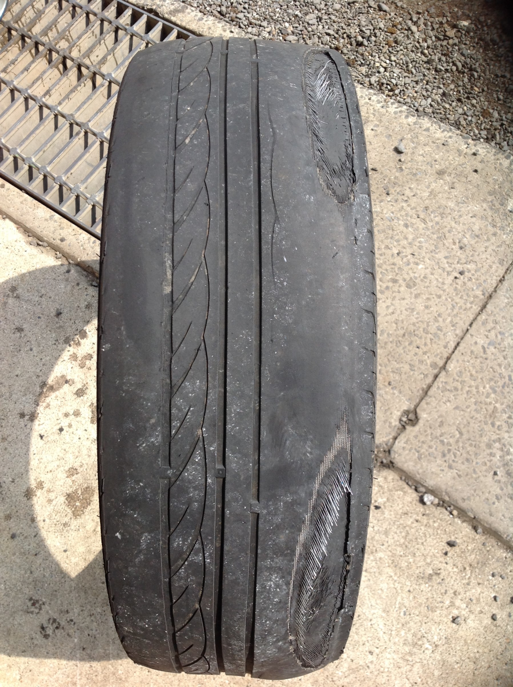 もう限界 タイヤから糸 タイヤのワイヤーが見えるのはアウト